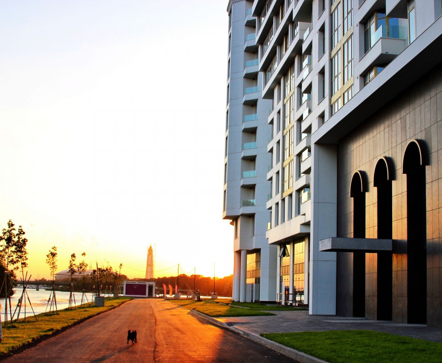 и приватности. Комплекс окружен с двух сторон водами рек Малой Невки и Ждановки с фронтальным выходом